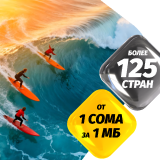 • Вне пакета: 1 Мб/10 сом,
