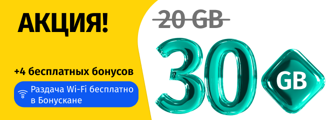 Увеличение интернет пакета является акционным предложением и доступно до 01.03.2026 г. для всех абонентов на тарифах «Это 20 GB» и «Это 30 GB».